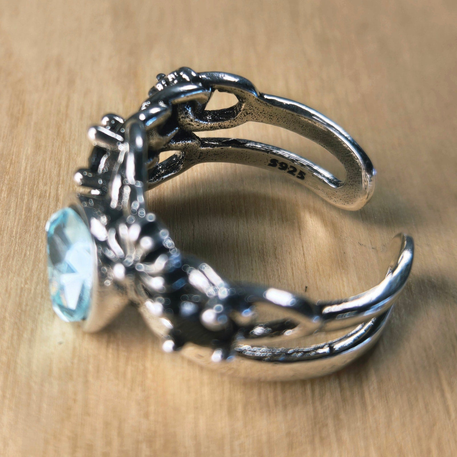 #SterlingSilver #FloralRing #BlueGemRing #BohoJewelry #Fairycore #CottagecoreStyle #WhimsyGoth #AdjustableRing #NatureInspired #AlterNativEra