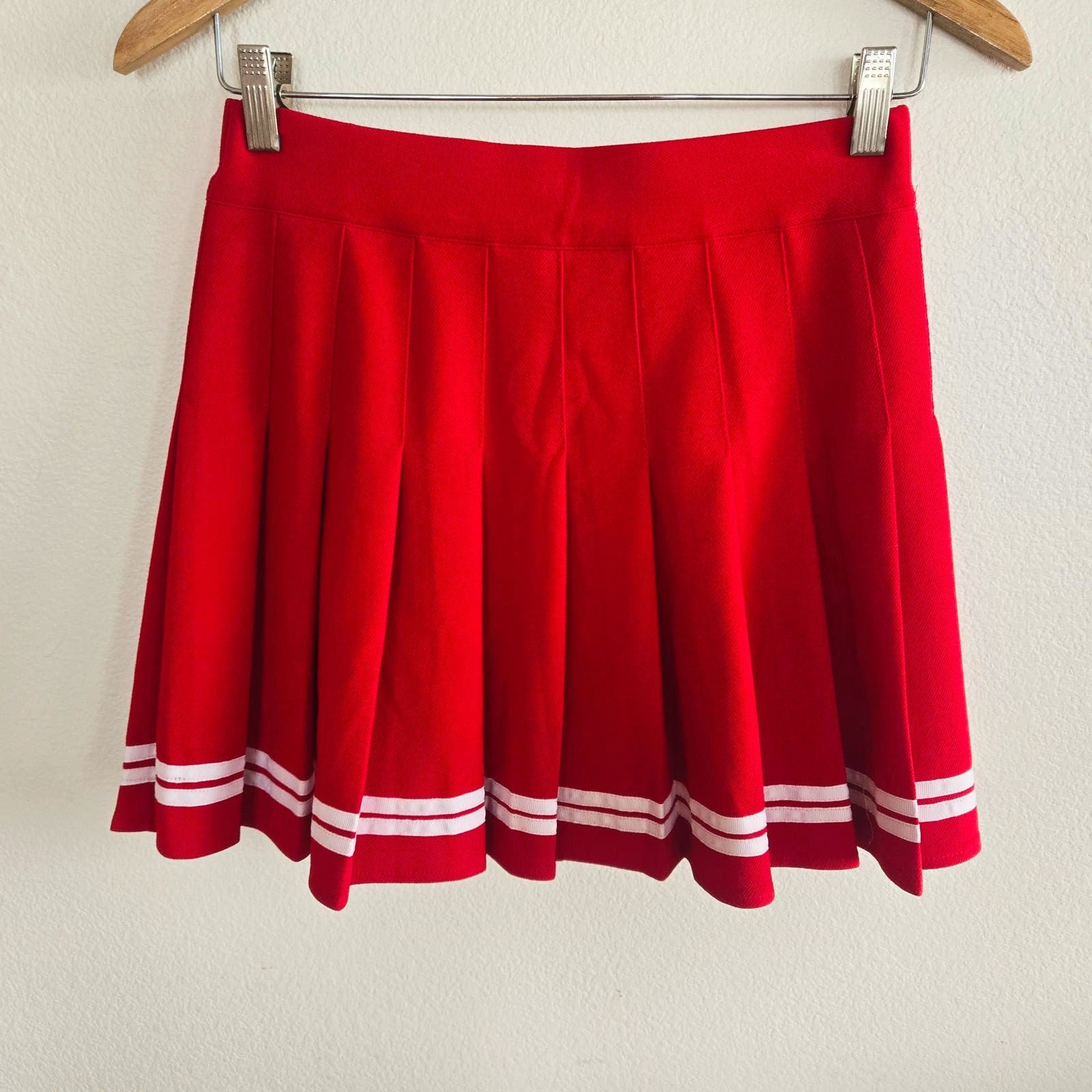 Rock this adorable red pleated mini cheer skirt! It's perfect for adding a pop of color and fun to any outfit.