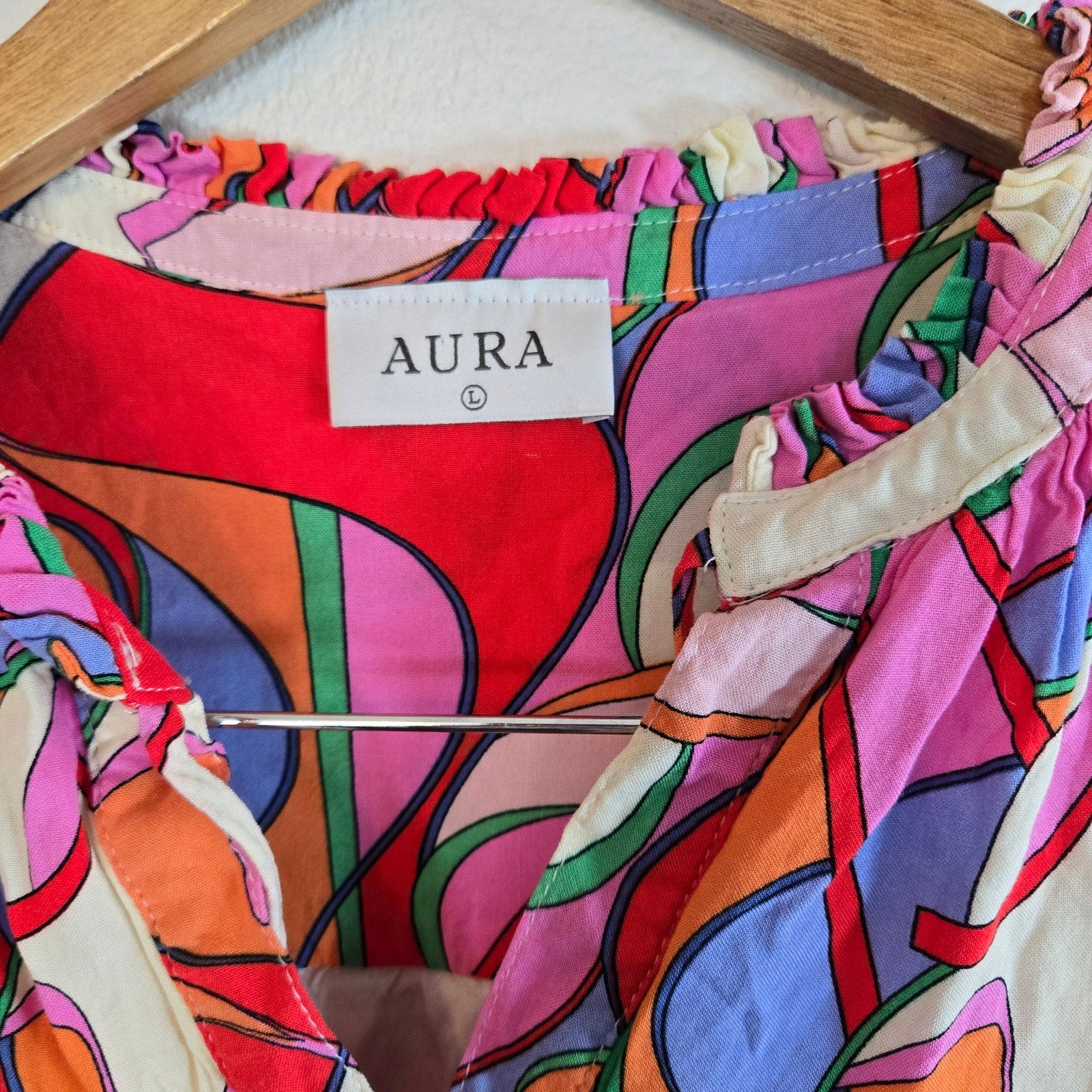 Size L – Mid-Mod Abstract Babydoll Ruffle Dress by Aura