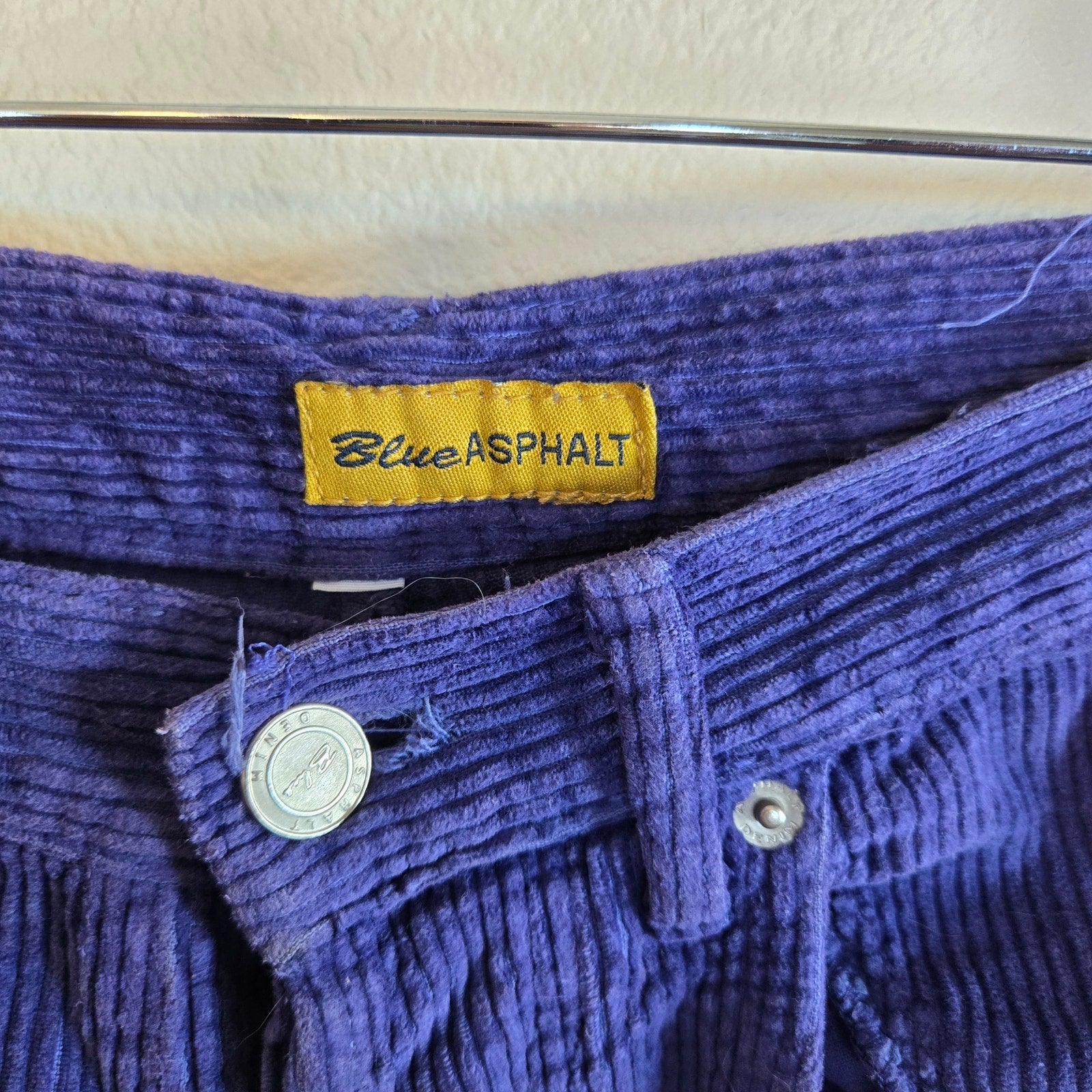 Features: Button fly, functional pockets, patchwork panels, upcycled