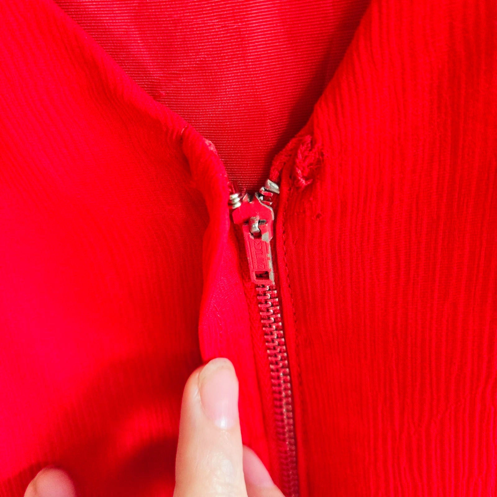This is a beautiful vintage red chiffon dress from the 1960s, perfect for a prom or special occasion! It's sleeveless and features a classic silhouette. Make a statement at your next event with this gorgeous vintage piece.