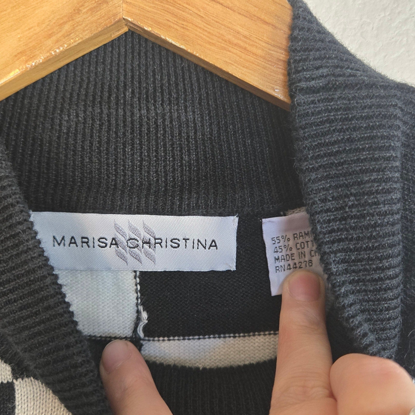 Hashtag Block: #MarissaChristina #BalloonTop #CheckerboardKnit #VintageTank #B52sStyle #StatementSweater #RamieBlend #FunkyVintage #Y2Ktop #RetroTurtleneck